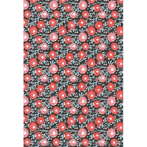 These papers, specially made, are thin but very strong so they will not tear or bobble when glue is applied, and are easily smoothed out. This paper has a black background and a pink and red floral pattern.