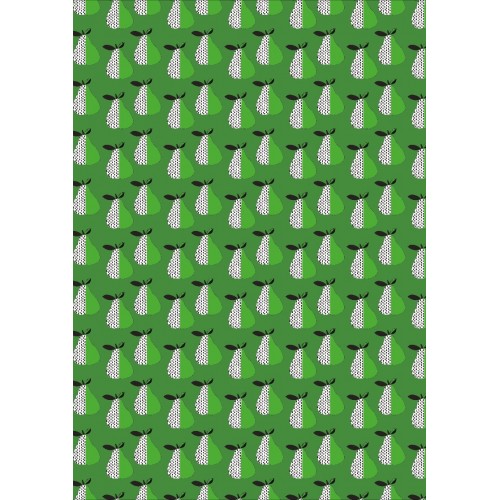 These papers, specially made, are thin but very strong so they will not tear or bobble when glue is applied, and are easily smoothed out. This paper has a retro design based on a pear shape in green and white with black out lines.