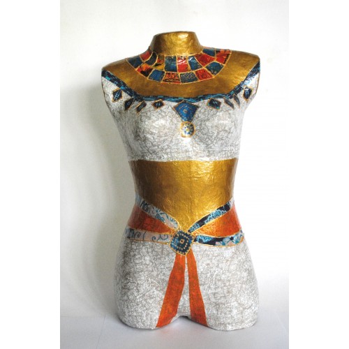Buy this gorgeous piece of home decor made from papier mache, hand decorated, highlighted with gold lines and beautifully finished with varnish to make it durable and easy to clean. Cleopatra measures 33cm tall and 20cm wide. Makes a stunning gift. Please allow 2-3 weeks for delivery.
